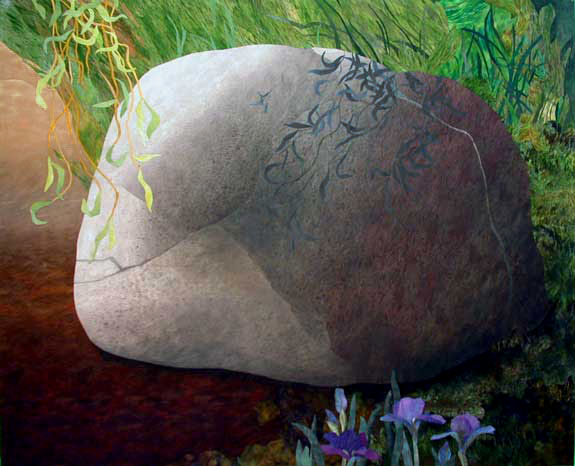 Written in Stone, 2009, 128 x 156 cm, fabric collage and mixed media